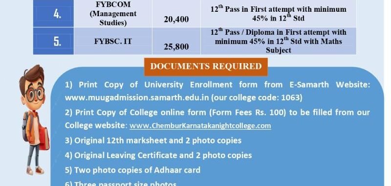 | 3 | FYBCOM (Accounting & Finance) | 20,200 | 12th Pass in First attempt with minimum 45% in 12th Std |